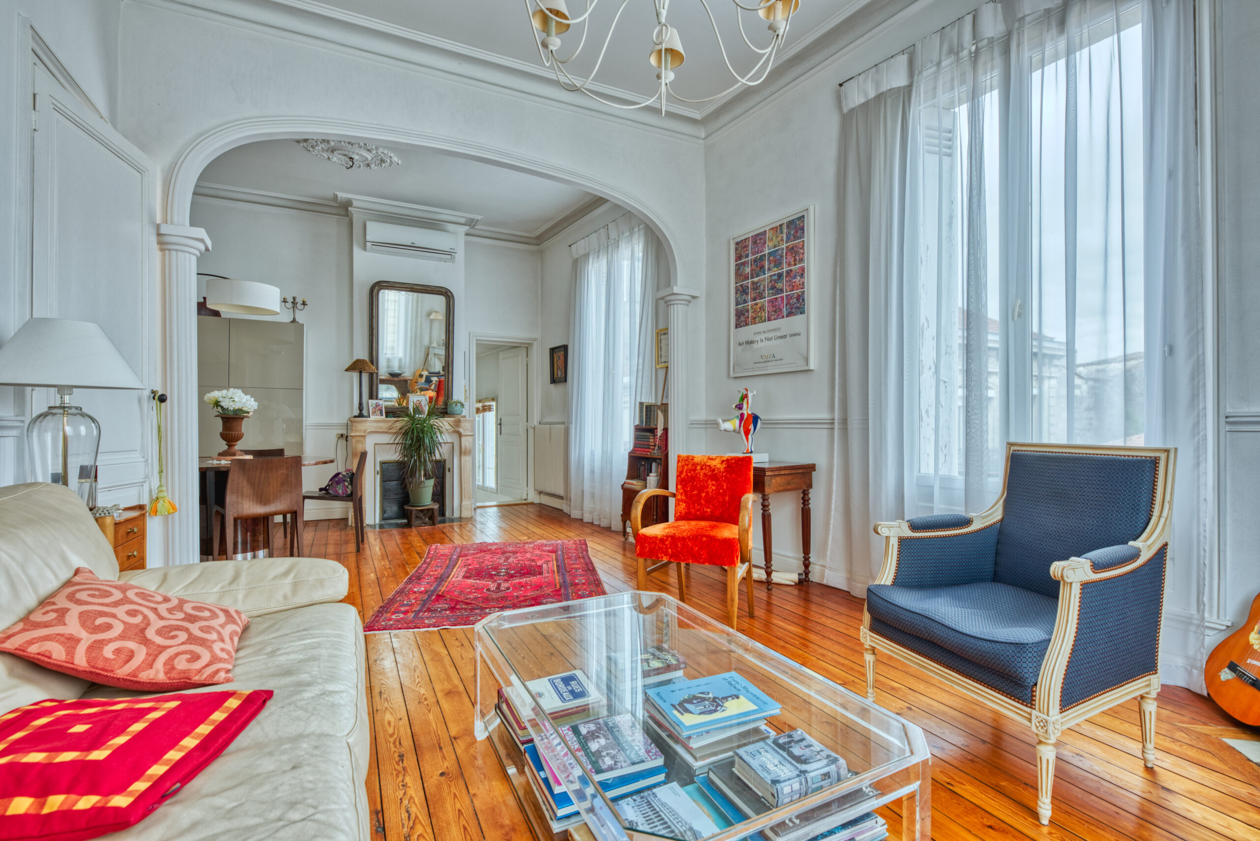 Bordeaux à deux pas du Parc Rivière et du Jardin public, au coeur d’un quartier prisé et raffiné, vous trouverez ce superbe appartement de 113m2 situé au 1er étage d’un immeuble de caractère.