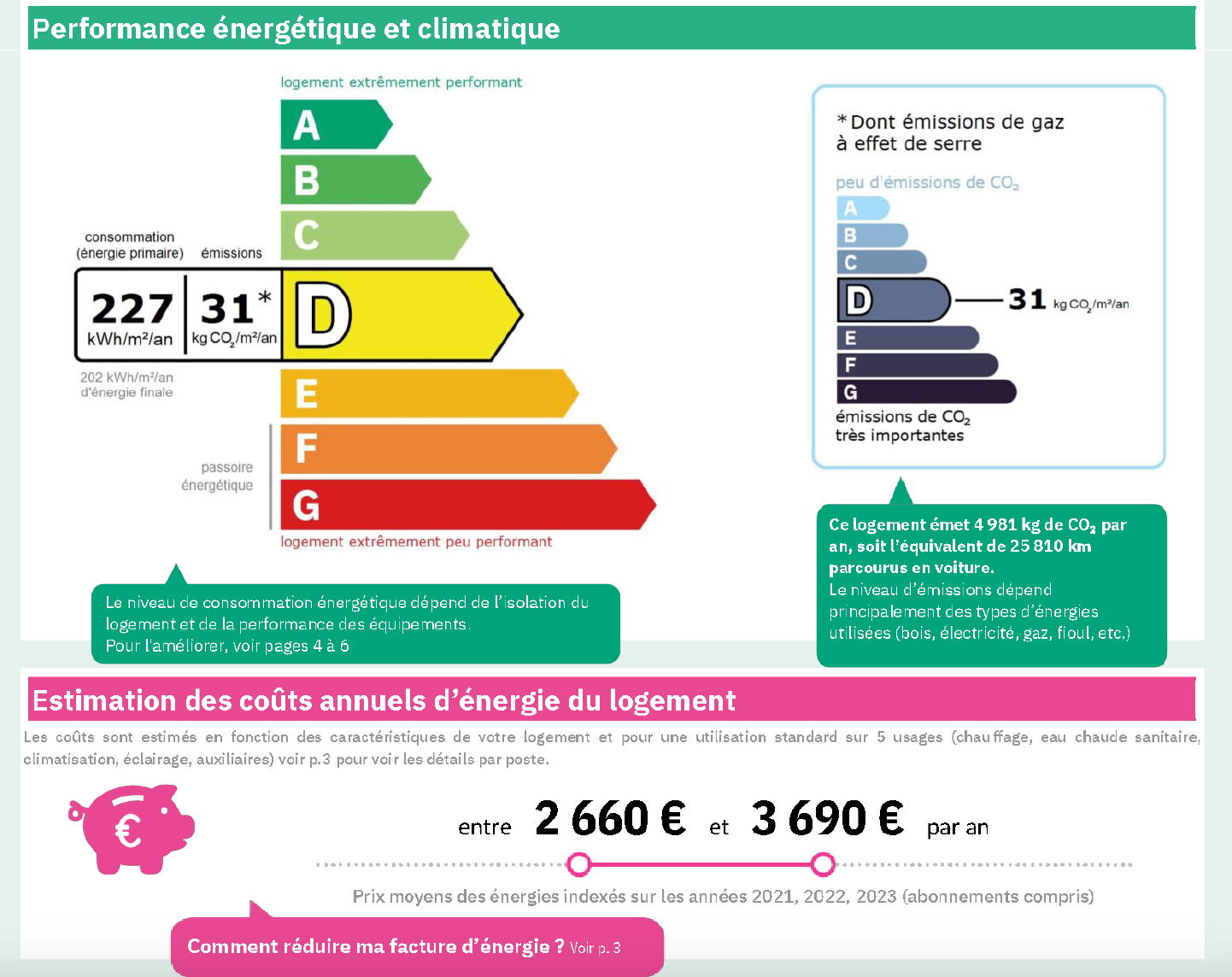 Montant des dépenses d’énergies annuelles : 2660€ et 3690€